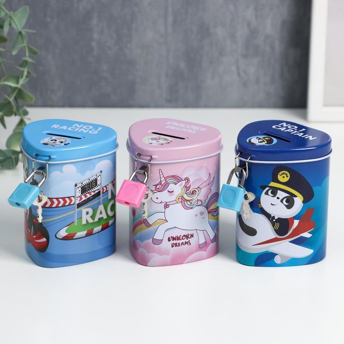 Копилка металл "Зверушки" цилиндр треугольник МИКС 10х7,8х8 см