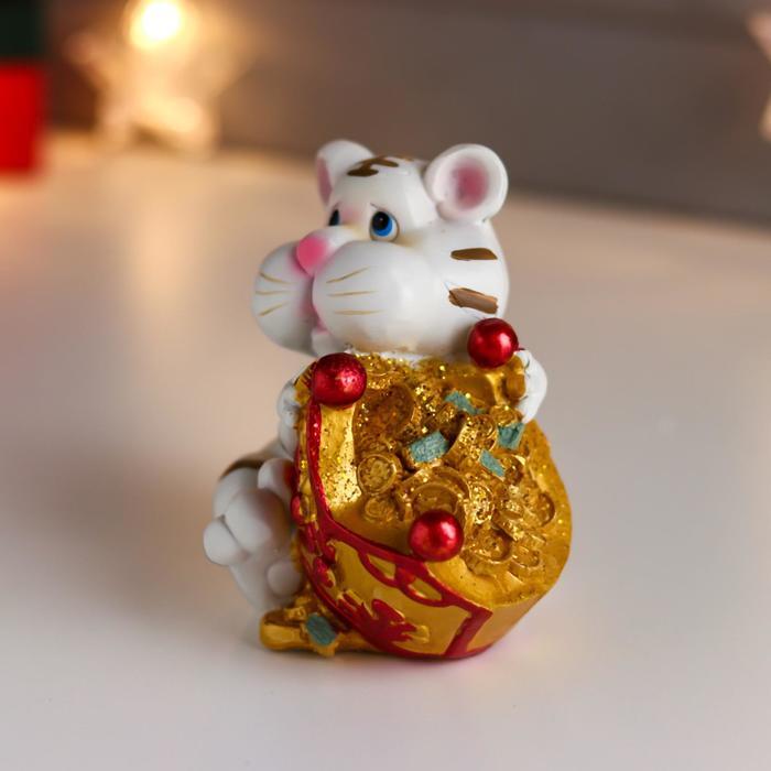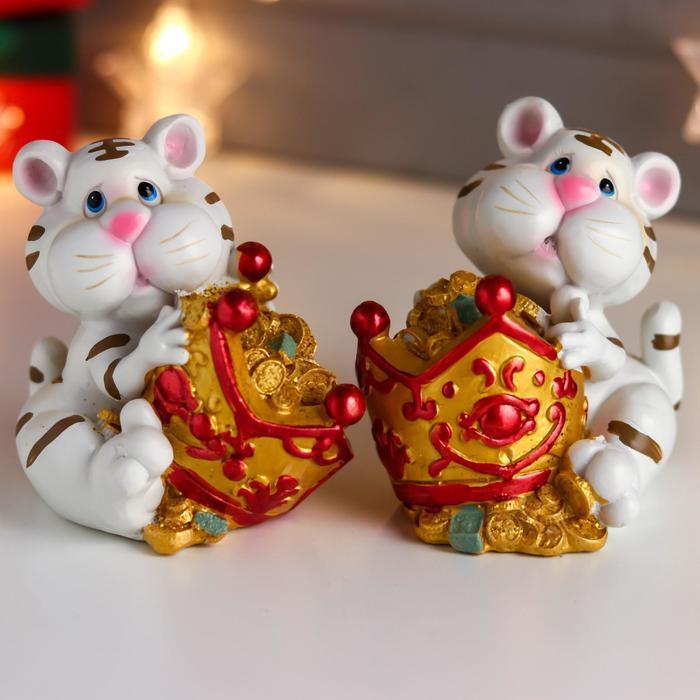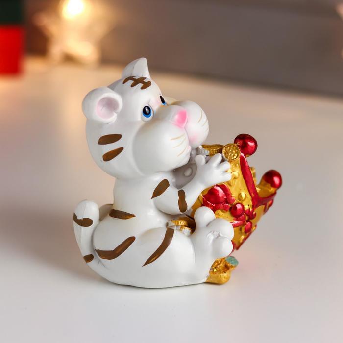 Копилка полистоун "Кремовый тигра с монетами и короной" МИКС 10х7х11 см