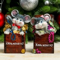 Копилка "Котик с сердцем" серый чуб 10х9х13см