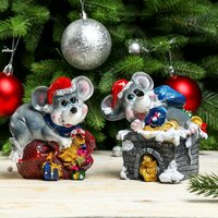 Копилка полистоун "Крысик в новогоднем носке" микс 11х10х7 см