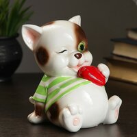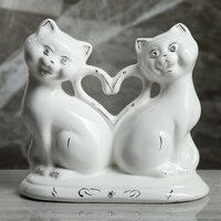 Копилка "Котики с сердцем" малая, глазурь, бантик, белая