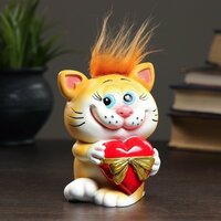 Копилка "Котик с сердцем" рыжий чуб 10х9х13см