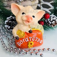Копилка Свинка-Ушастик с пожеланием "Богатства" символ 2019 года (9,5х5,5х5 см)