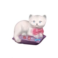 Копилка Котик на подушке 18х16 см серая розовый бант фиолетовая подушка (Копилки)