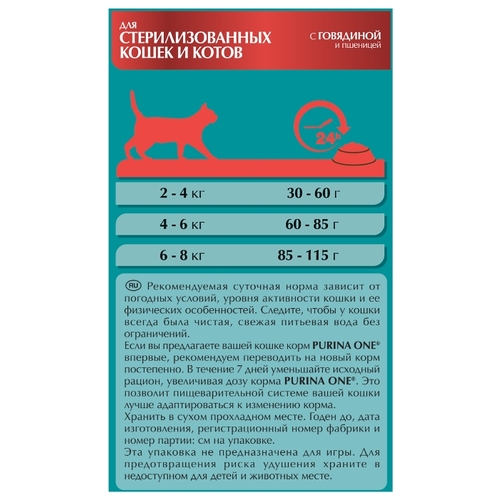 Корм для стерилизованных кошек Purina ONE для профилактики МКБ, с говядиной 750 г