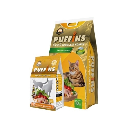 Корм для кошек Puffins Сухой корм для кошек Вкусная Курочка (10 кг)