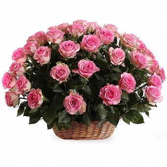 Букет в корзине 51 роза. Композиция Корзина из розовых роз 50 см. (Эквадор)