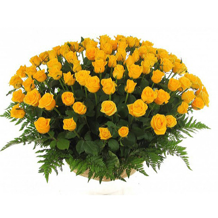 Букет в корзине 51 роза. Композиция Корзина из желтых роз 50 см. (Эквадор)