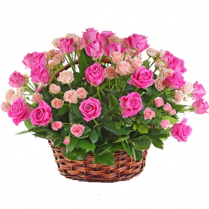 Букет в корзине 51 роза. Композиция Корзина из розовых и кустовых роз 50 см. (Эквадор)