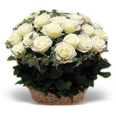 Нежное Очарование. Композиция Корзина из белых роз 51 шт. 50 см. (Эквадор)