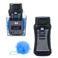 Подарочный набор "Настоящему мужчине": гель для душа, мочалка в пластиковой подставке