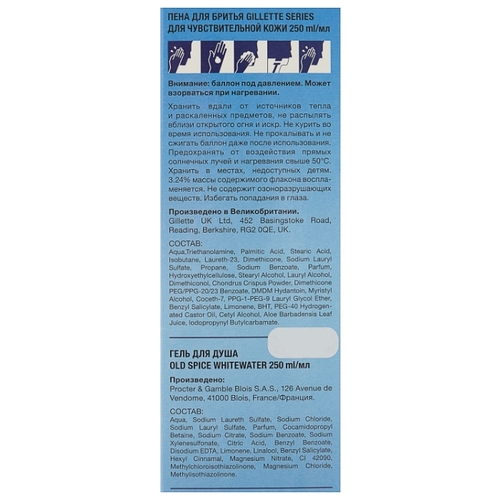 Набор Gillette Пена для бритья Gillette Sensitive skin и гель для душа Old Spice Whitewater