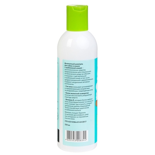Шампунь VEDA Деликатный для собак и кошек с проблемной кожей, 220 мл