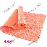 Коврик для йоги и фитнеса 4 мм (Оранжевый с цветами)