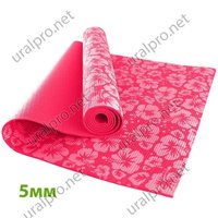 Коврик для йоги и фитнеса 5 мм (Розовый с цветами)