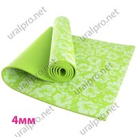 Коврик для йоги и фитнеса 4 мм (Зеленый с цветами)