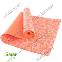 Коврик для йоги и фитнеса 5 мм (Оранжевый с цветами)
