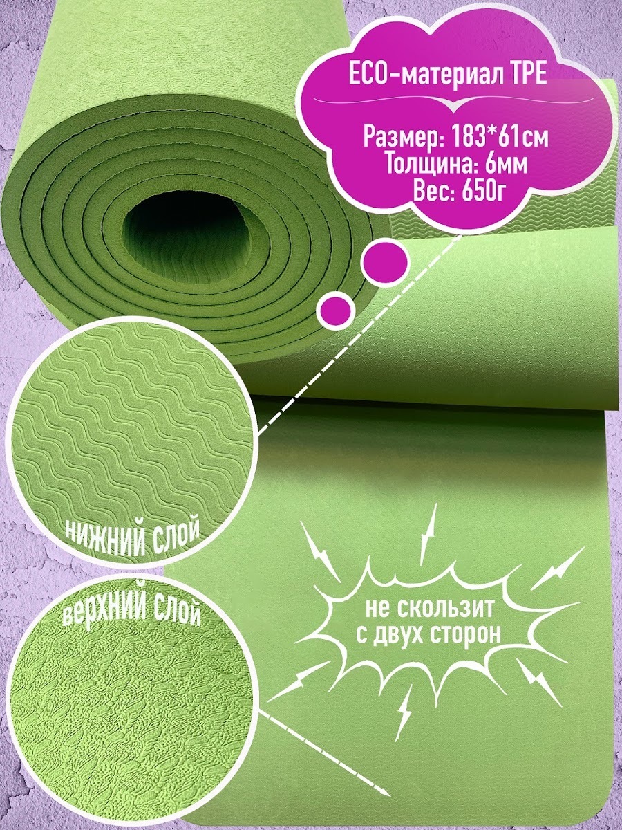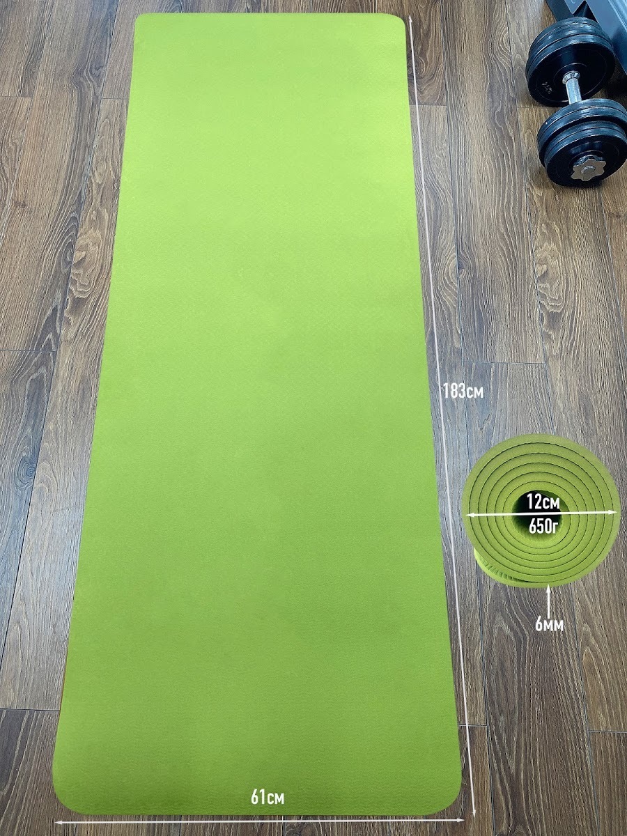 Коврик спортивный, для фитнеса и Йоги, Like, Sport, Mat, Yoga, Profi, TPE, 183x61x06, M-1, Зеленый