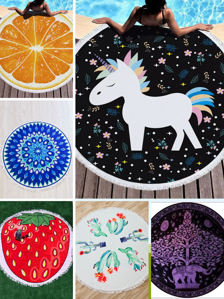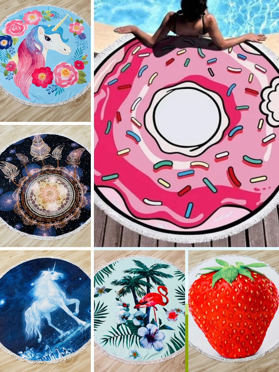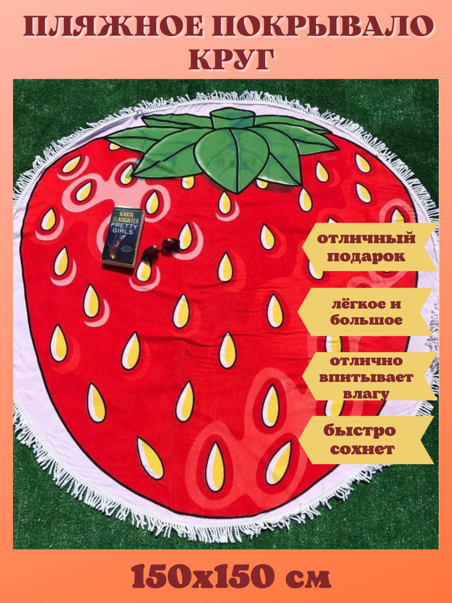 Круглое пляжное полотенце/ покрывало для пляжа круг/ коврик с бахромой 150 см