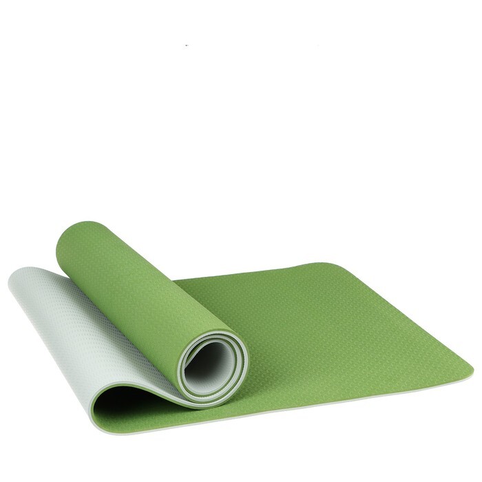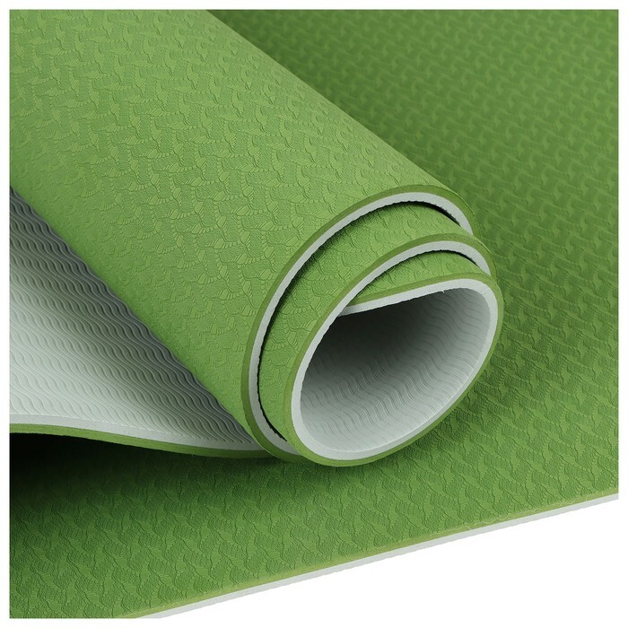 Коврик для йоги 183 x 61 x 0,8 см, двухцветный, цвет зелёный