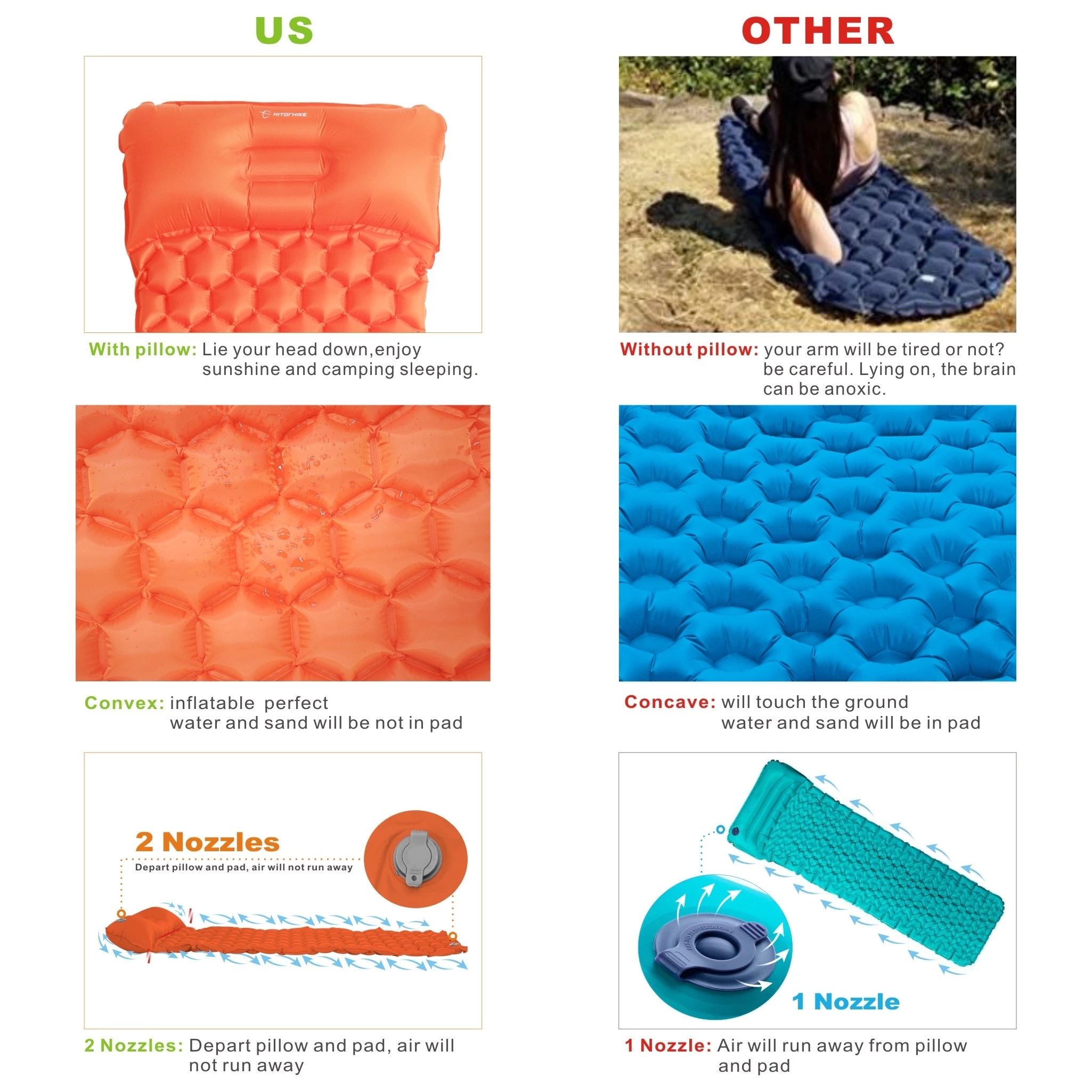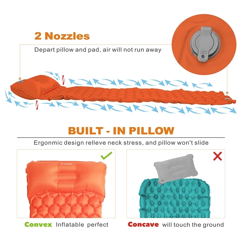 Коврик для сна надувной , надувной коврик для сна с подушкой, для кемпинга, туризма, 3 сезона