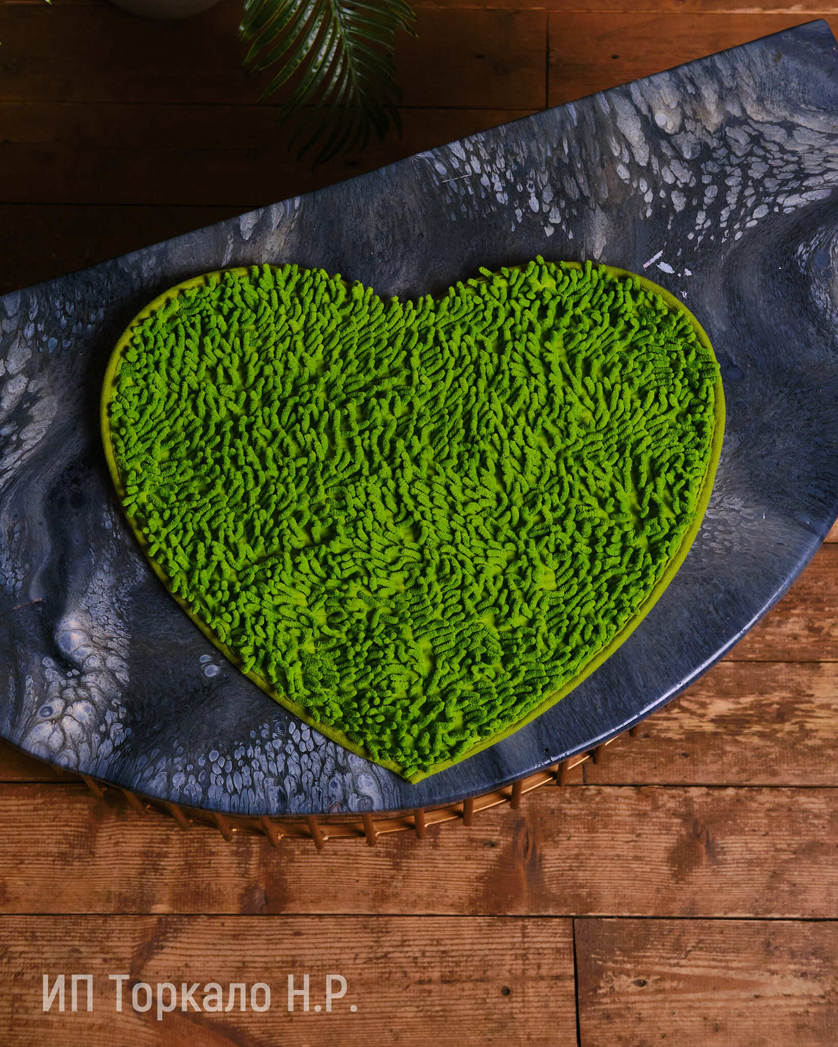 Коврик для ванной комнаты / Ковер-сердце / Зеленый коврик для ванной