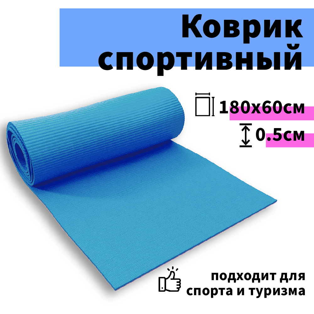 Коврик туристический 1800х600х5мм голубой / Коврик для туризма 0,5 см Сидушка Пенка тонкий Каремат