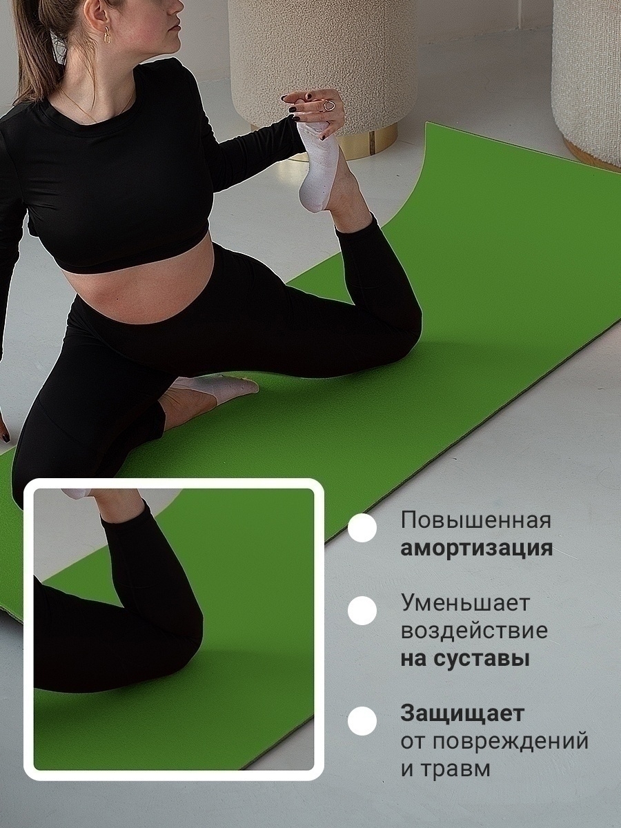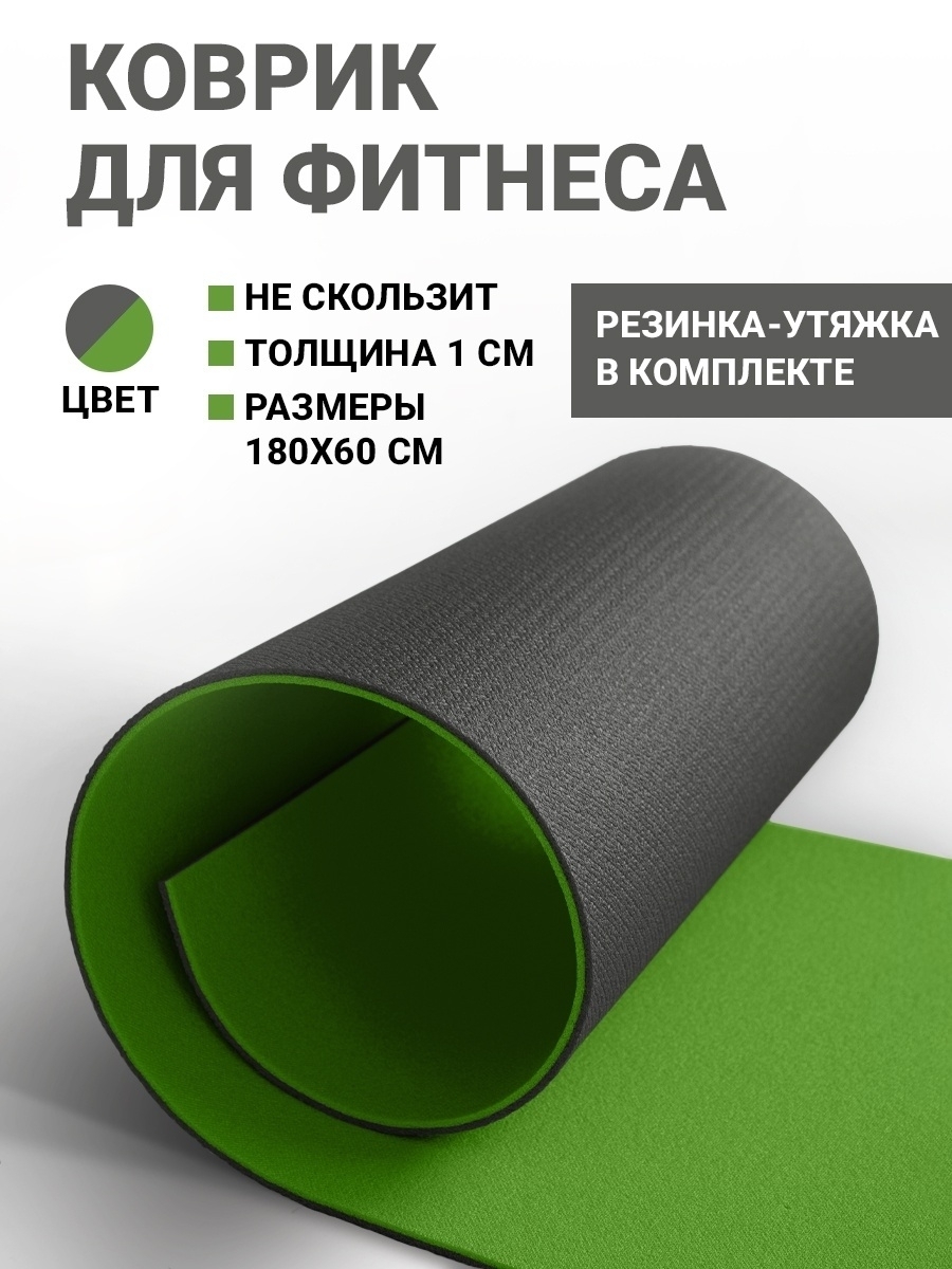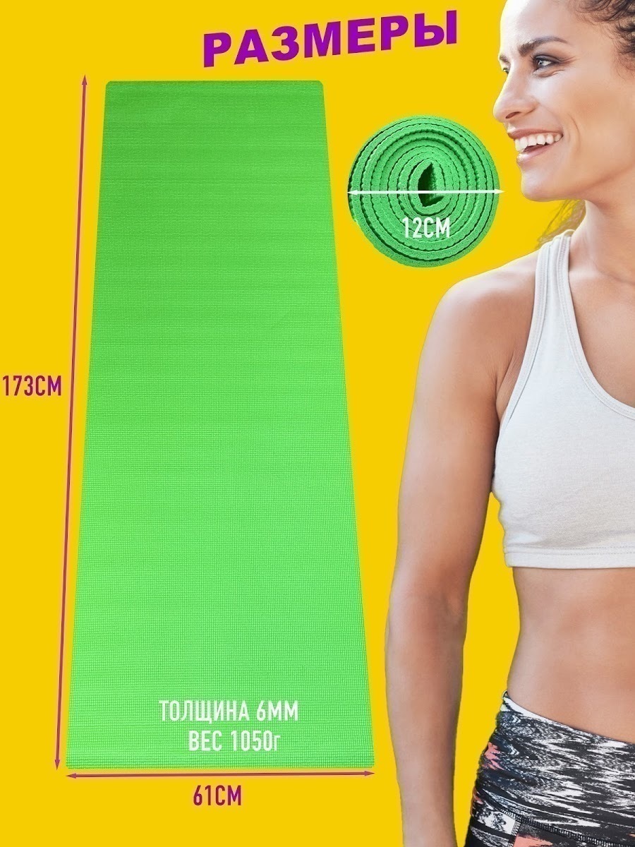 Коврик спортивный для фитнеса и йоги, Like Sport Mat, PVC, 173x61x0.6, M, Зеленый