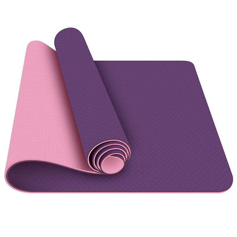 Коврик для йоги и фитнеса 183x61x6, двойной фиолетовый-розовый