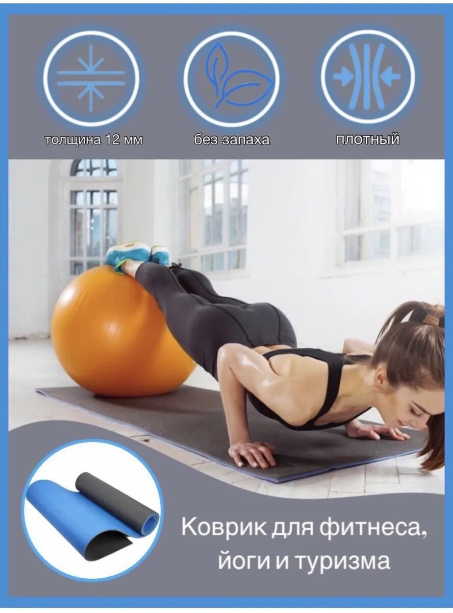 Коврик для фитнеса и йоги, нескользящий, Eco-friendly.