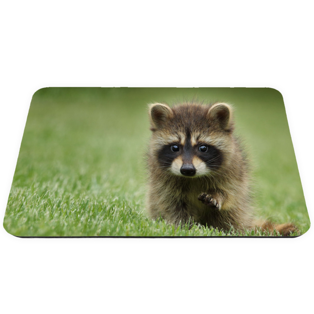 Игровой коврик для мыши Енот на траве, черный, зеленый