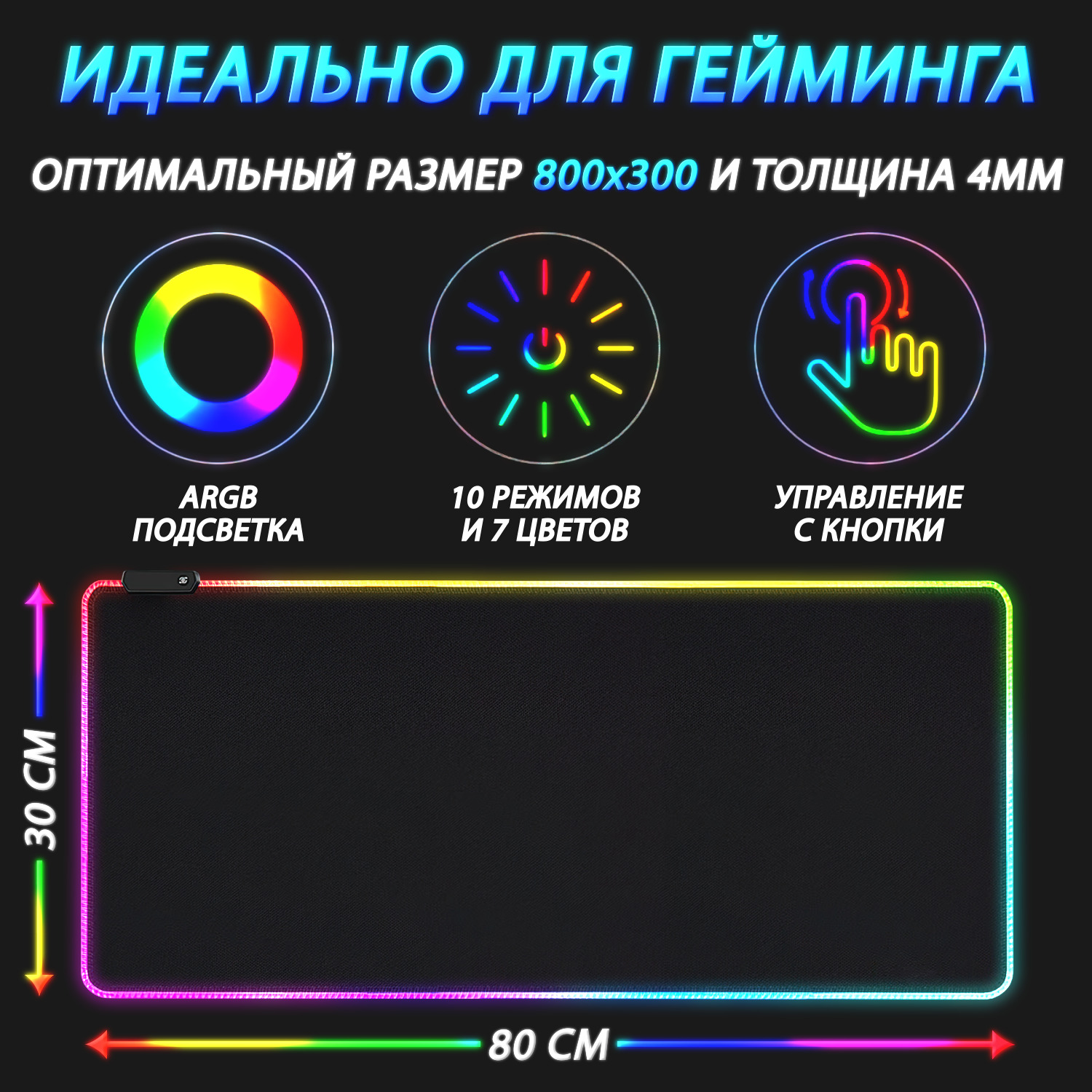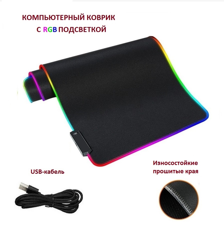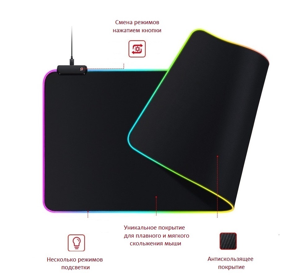Коврик для мыши игровой со светодиодной RGB подсветкой (60*40см.)