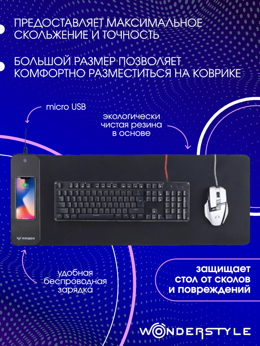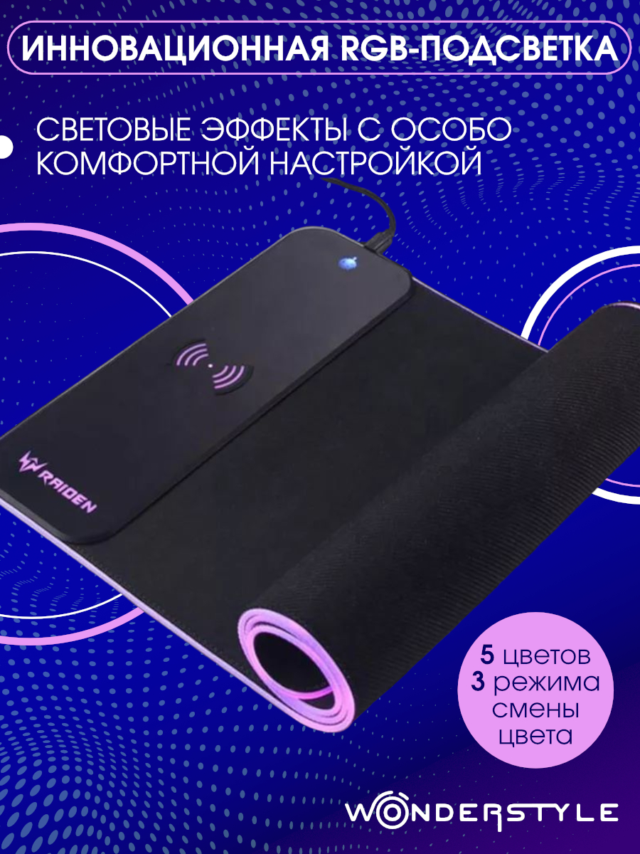 Игровой коврик для мыши Wonderstyle Wireless Charging Mouse Pad, черный