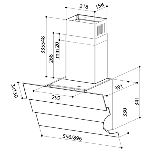 Каминная вытяжка FALMEC Lumen Parete 90 IX (600)