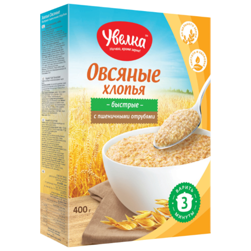 Увелка Хлопья овсяные с пшеничными отрубями, 400 г