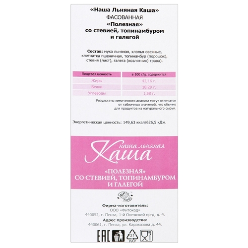 Наша Льняная Каша Каша Полезная со стевией, топинамбуром и галегой, 400 г