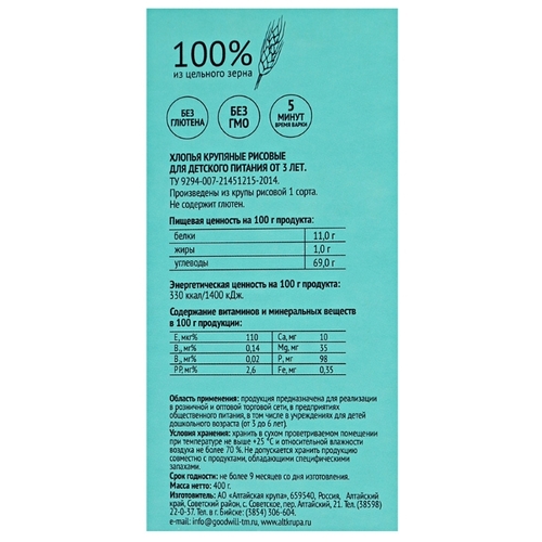 Ясно cолнышко Хлопья 5 злаков, 400 г