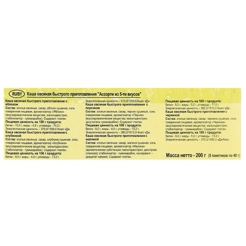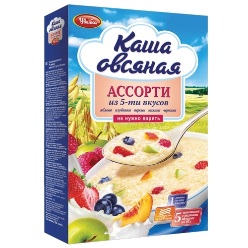 Увелка Каша овсяная быстрого приготовления Ассорти из 5 вкусов, порционная (5 шт.)