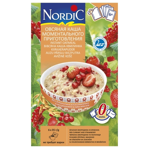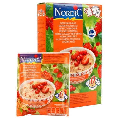 Nordic Каша овсяная моментального приготовления с красной смородиной и клубникой, порционная (6 шт.)