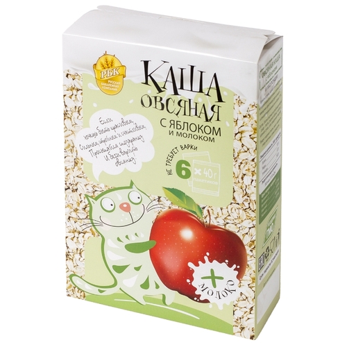 Русская бакалейная компания Каша овсяная с яблоком и молоком без варки, порционная (6 шт.)