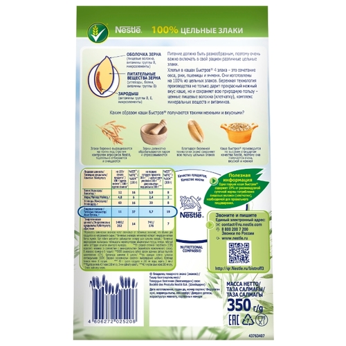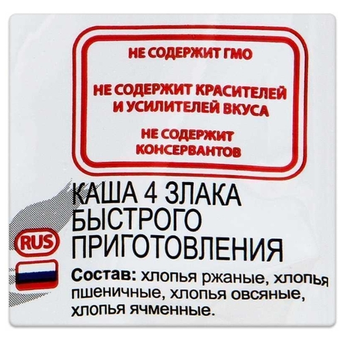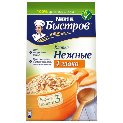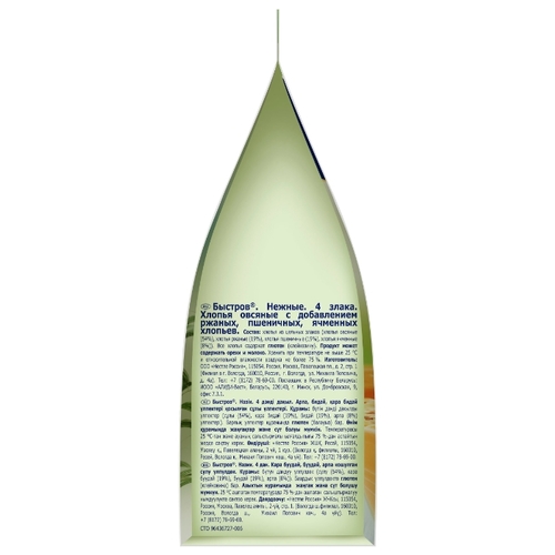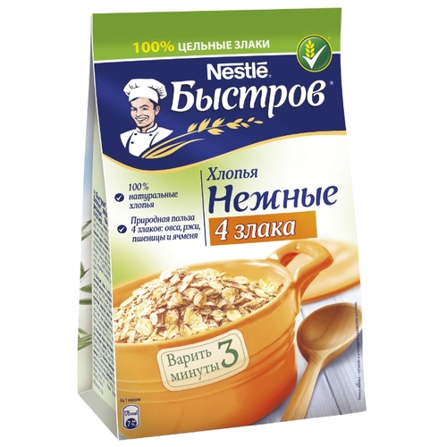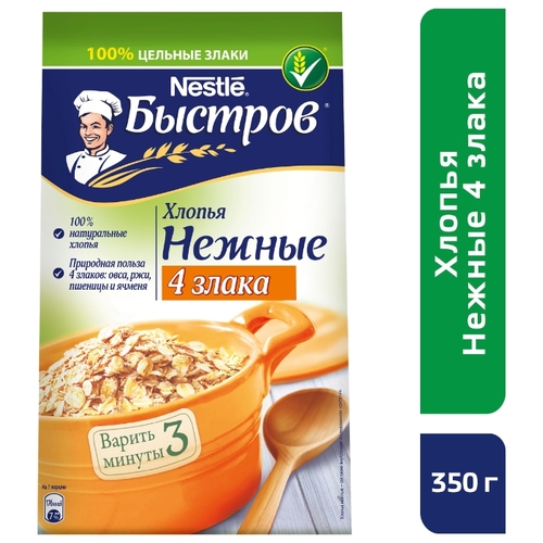 Быстров Хлопья 4 злака Нежные варимые, 350 г