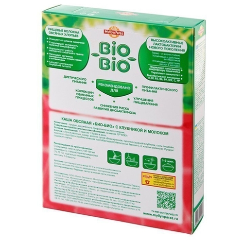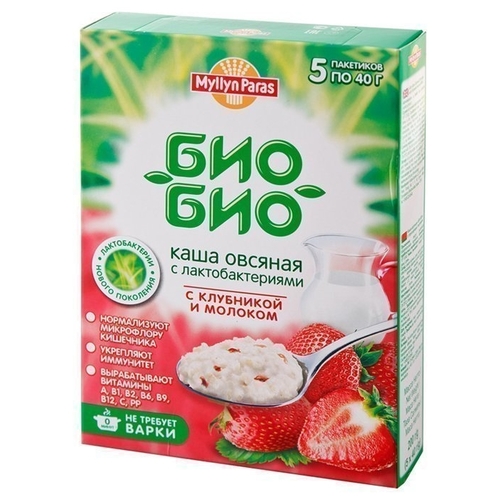 Myllyn Paras Био-Био Каша овсяная с клубникой и молоком, порционная (5 шт.)