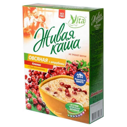 Vita Живая каша Каша овсяная с отрубями, клюквой и пребиотиками, порционная (6 шт.)