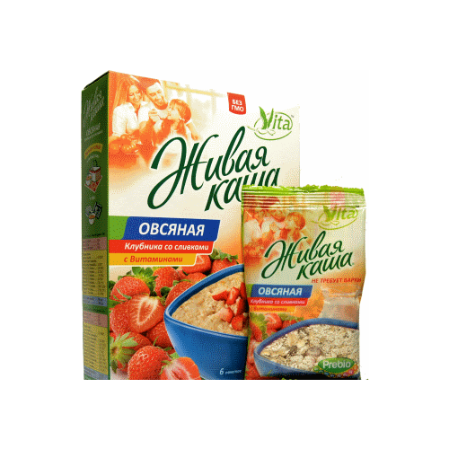 Vita Живая каша Каша овсяная клубника со сливками и пребиотиками, порционная (6 шт.)