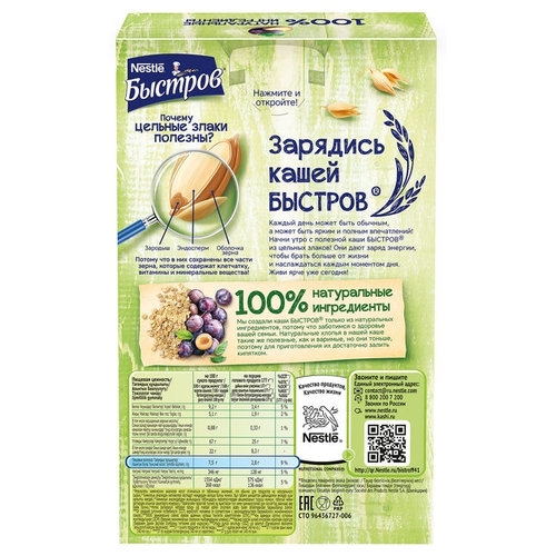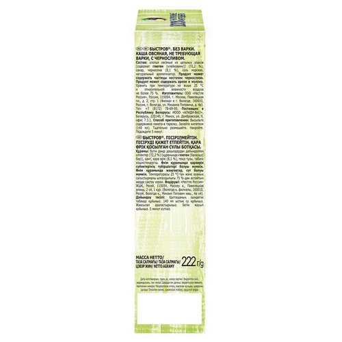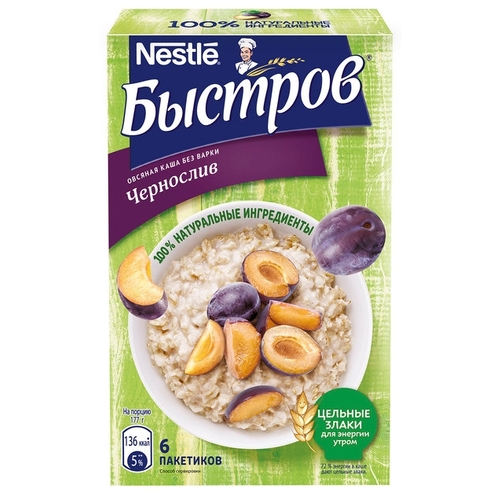 Быстров Каша овсяная Чернослив без варки, порционная (6 шт.)