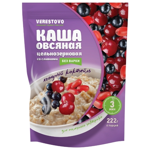 Verestovo Каша овсяная быстрого приготовления со сливками Ягодный коктейль, порционная (6 шт.)