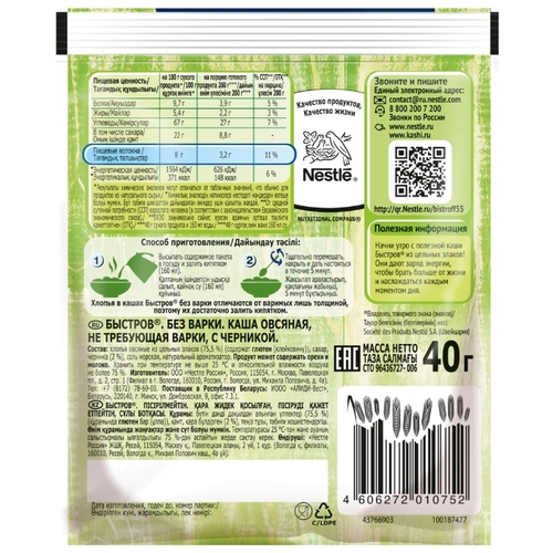 Быстров Каша овсяная Черника без варки, порционная (1 шт.)