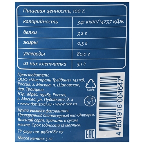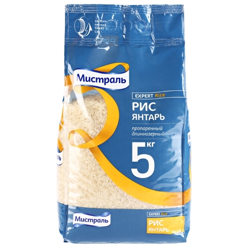 Рис Мистраль Янтарь Expert пропаренный длиннозерный 5 кг