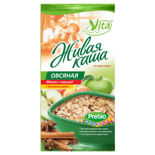 Vita Живая каша Каша овсяная с яблоком, корицей и витаминами, порционная (1 шт.)