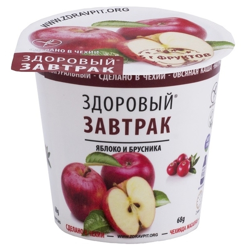 Здоровый завтрак Каша овсяная безглютеновая быстрого приготовления Яблоко и брусника, 68 г